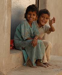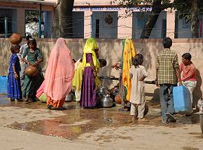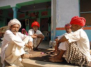 Die Kinder und Frauen in den Hauseingängen betrachteten uns freundlich-interessiert, manche winkten ausgelassen, andere zogen sich scheu ins Haus oder hinter Mutters Sari zurück. Der 3,5-stündige Gang durch das Dorf war sehr interessant und wir können nur empfehlen, die seltene Gelegenheit zu nutzen, um dies mit kompetenter Begleitung zu tun. Man erfährt eine Menge zum ländlichen Alltagsleben in Rajasthan und kann viele Fragen stellen. Leider kann ich auf einer Seite nur einen Bruchteil der Bilder zeigen, die dort entstanden sind.