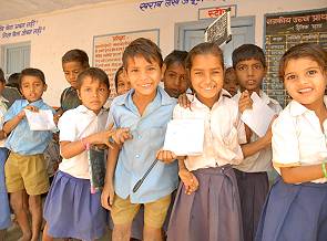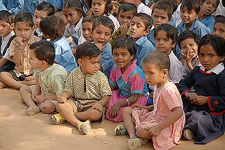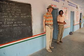 Uns wurde noch die Küche gezeigt, in der mit einfachsten Mitteln für alle 290 Kinder jeden Tag eine warme Mahlzeit gekocht wird. Für die Mädchen ist die Schule umsonst, Jungen zahlen für die ersten 4 Schuljahre 60 Rupien im Jahr Schulgeld - auch für arme Landarbeiter ein eher symbolischer Preis. Ein sehr interessanter Besuch, um den Schulablauf nicht zu stören wanderten wir nach kurzer Zeit weiter im Dorf umher.