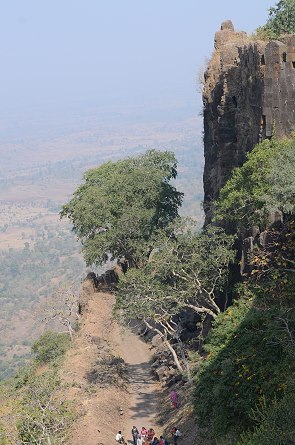 Die Moschee am Rand der Klippe ist auf massiven Granitfelsen erbaut. An klaren Tagen kann man von hier aus hunderte Kilometer weit in die Nimar-Ebene hinaussehen. Die schmalen Minarette der Moschee sieht man schon aus der Ferne, der Zugang zu den Treppen war leider abgeschlossen.
