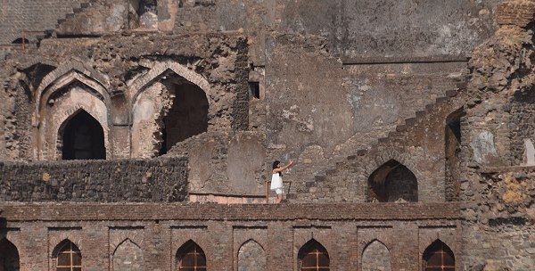 Auch von Maheswar aus wäre ein Ausflug hierher möglich. Alles an einem Tag zu besichtigen ist anstrengend in der Hitze, aber durchaus machbar. Schöner wäre es allerdings, direkt vor Ort zu wohnen. Dann könnte man die Besichtigung auf zwei Tage aufteilen, die glühende Mittagszeit meiden und unter Umständen bei schönerem Licht fotografieren. Innerhalb der Mauern stehen aber nur einfachere Unterkünfte zur Verfügung. Wir hatten am nächsten Vormittag auch genug Zeit für einen zweiten Besuch, haben uns dann aber für eine Besichtigung des Forts in Dhar entschieden, weil wir das wichtigste in Mandu schon besichtigt hatten.