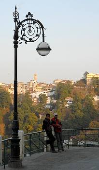 Wir haben Mussoorie als sehr sauber empfunden, mit allen Attributen eines Erholungsortes, ähnlich unseren Seebädern. Der Ort hat ein besonderes Flair, eine Mischung aus indischen Touristen, tibetanischen Flüchtlingen und britischer Konlonialarchitektur. Es gibt überall Bänke zum Ausruhen, Pavillions mit Schatten und Weitblick, eine Seibahn und Fotostände, an denen man sich mit traditioneller Kleidung ablichten lassen kann. Schilder weisen darauf hin, den Ort sauber zu halten und es gibt sogar überall Papierkörbe, die täglich geleert werden. Ein Geheimnis des Erfolges: ein großer Teil der Altstadt ist Fußgängerzone, bzw. zumindest für Autos, Busse und LKW gesperrt, und viele Motorroller fahren hier auch nicht. Hier muß man höschtens vor einer Fahrradrikscha an die Seite treten, ganz selten fährt ein Auto eines Anliegers vorbei. Das fast völlige Fehlen des Verkehrs oberhalb von Library Point und Busbahnhof bringt eine für indische Verhältnisse ungewöhnliche und faszinierende Ruhe in die Bergwelt.