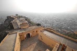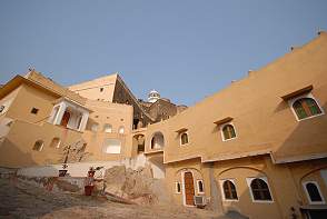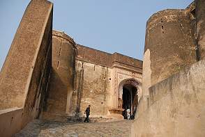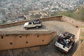 Die Autos werden auf dem Hof geparkt und man steigt im in offene Jeeps, die hoch zum Fort fahren. Der Weg ist mit glatten Steinen gepflastert und führt durch mehrere Tore, die nur im Anschluß an eine Kurve zu durchfahren sind. So konnten Angreifer keinen Rammbock einsetzen und Kriegselefanten schafften die Steigung auf glattem Grund auch nicht.