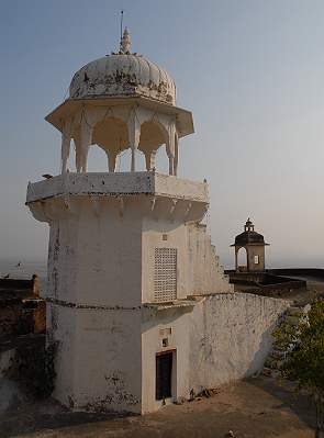 Das Fort Kuchaman ist ein Irrgarten mit zahlreichen Treppen, Dachterrassen, Innenhöfen, Schießscharten und Festungsmauern auf etlichen Etagen und mehreren Ausbaustufen. Man sollte sich auf jeden Fall ausreichend Zeit nehmen um alles zu erkunden. Es werden auch Führungen angeboten. Am Nachmittag streiften wir erst einmal alleine herum. So kamen wir auch zum kunstvoll ausgemalten China Gate. Den Namen bekam es, weil im Inneren Malereien im chinesischen Stil zu sehen sind, die eine Indienreise eines chinesischen Kaufmanns im 18. Jahrhundert darstellen.