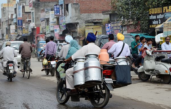 Mit 551 Einwohnern pro Quadratkilometer ist das Bundesland dichter bevölkert als der indische Durchschnitt, der bei 382 Einwohnern pro Quadratkilometer liegt. So sieht man unterwegs zwar viele Felder, aber man kommt auch immer wieder durch Dörfer, die man bei uns schon Kleinstädte nennen würde. Dort unterscheiden sich die Straßenszenen nicht wesentlich von denen anderer Regionen in Indien, nur sieht man hier mehr Menschen mit Turban. Ab und zu begegnen einem unterwegs auch Sikh-Pilgern, die auf dem Weg zum nächsten Tempel sind.