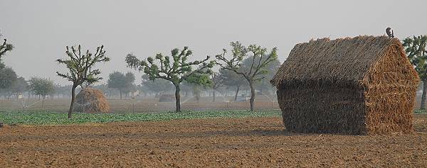 Von Surajgarh aus fährt man ca. 180 km oder 3,5 Stunden bis nach Delhi. Besonders der erste Teil der Fahrt war faszinierend. Früh am Morgen lag sich noch Dunst über der flachen Landschaft und über sehr schmale Straßen verließen wir das Shekhawati. Am Wegrand malerische Szenen: Bauern, die mit Kamelen ihre Felder pflügen, Bewässerungssysteme über hellgrüner Saat im Morgenlicht und zahlreiche Kinder auf dem Weg zur Schule. Ab und zu sahen wir auch einige scheue Antilopen. Hier blühten auch die Senffelder in leuchtendem Gelb besonders üppig, die Region ist wasserreich und fruchtbar.