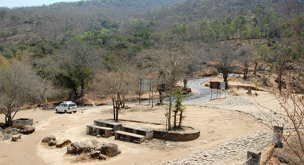 Am Fuß der Berge auf halber Strecke machten wir eine Rast. Der Rastplatz war sehr trocken, aber von einem runden Aussichtturm hatte man einen schönen Blick ins Tal und auf die gegenüberliegende Höhenzüge. Von hier aus sollte man angeblich sehr gut wilde Gaur beobachten können, aber es war auch mit Fernglas nicht ein einziges Tier zu sehen.