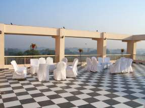 Die Auswahl auf der Karte ist riesig, neben indischen Gerichten bekommt man hier auch chinesische und internationale Küche. Vorher kann man in den hauseigenen Bars, der Khayaam Bar am Pool oder der Mughal Bar im Hauptgebäude, einen Drink zu sich nehmen.