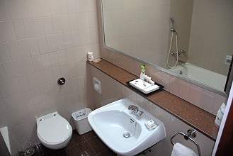 Das Hotel verfügt über 81 Deluxe Zimmer, 154 Superior Zimmer and zwei Suiten. Unser Zimmer Nummer 402 lag am Gang Ende, was angenehm war, da wir dann nur einen direkten Nachbarn hatten. Wie in allen Hotels ist besonders das Bad sehr hellhörig und hier war es auch sehr klein. Wenn eine Person vor dem Spiegel stand, war wegen Überfüllung geschlossen. Der dubiose Plastik-Duschvorhang war auch nicht gerade Luxusklasse, aber für eine Nacht war es in Ordnung.