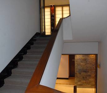 Die Inneneinrichtung des Hauses ist sehr modern und stylisch und gefiel uns ausgesprochen gut. Klare Linien, Wände aus Onyx und wunderschönem Marmor (man sollte auf jeden Fall die Restaurant-Toilette im Erdgeschoss besuchen, die Wände dort sind irre), glänzende Hölzer, warme Farben und gerade Formen.