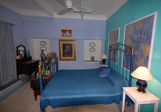 Die 40 Zimmer des Hotels sind alle unterschiedlich und recht liebevoll eingerichtet, meist in einem Mix aus Kolonialstil und traditioneller indischer Einrichtung. Viele Zimmer haben einen kleinen Balkon oder eine Terrasse, die Preise sind sehr gestaffelt. Auch wer die kleineren Räume bewohnt, sollte sich vom Personal die Luxussuiten wie Deva Mahal oder Chandra Mahal zeigen lassen. Am besten am Morgen, wenn die Gäste abgereist sind.