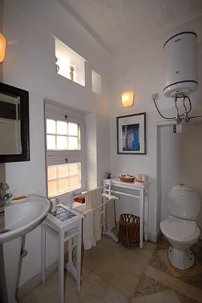 Im Bad gab es heißes Wasser vom eigenen Geyser und eine nette Nische mit Figuren in der Wand, die von hinten beleuchtet wurden. Weisse Holzmöbel sorgten hier für genügend Ablagefläche.