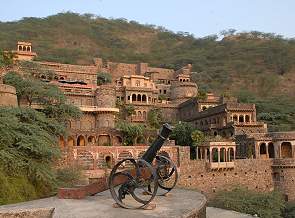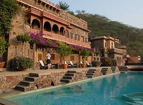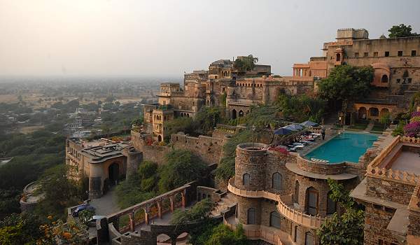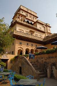 Der Palast wurde im Jahr 1464 erbaut und 1947 verließ der Raja Rajdeo seine Residenz, die danach langsam verfiel. Im Jahr 1986 wurden die jetzigen Besitzer auf das Anwesen aufmerksam und begannen in Zusammenarbeit mit den örtlichen Handwerkern langsam mit der Restaurierung des Gebäudes. Insgesamt besitzt die Neemrana-Gruppe 13 Hotels in Indien, deren Bausubstanz über einen Zeitraum von über 700 Jahren errichtet wurde.