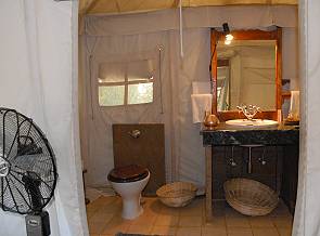 Auf dem Gelände verteilt liegen 12 Zelte im Halbkreis um das Zentrum der Anlage. Hier befindet sich die Bar, am Abend sitzt man am Lagerfeuer und lauscht den Musikanten. Sie treten nicht jeden Abend auf, man wechselt sich mit der benachbarten Anlage ab, da der Schall die Musik herüber trägt. Nach dem Game Drive am Nachmittag treffen sich die Gäste zu Tee und Kuchen unter einem Zelt. In zwei gemütlichen Hängematten zwischen Bäumen oder auf Rattanliegen auf kleinen Terrassen mit Blick in den Wald lässt sich die Pause am Mittag gut vertrödeln. Einen Pool gibt es hier nicht.