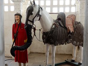 Die angrenzenden Räume sind zu Ehren der Pferde und Helden der Schlacht von Haldighati, die am 18.Juni 1576 stattfand, dekoriert. Im Inneren befinden sich einen umfangreiche Waffensammlung und mehrere Monumentalgemälde der Schlacht. Besonders interessant ist die Elefantenrüssel-Attrappe, die damals Pferden im Kampf um den Kopf gebunden wurde. Auf einem Gemälde ist der Einsatz dargestellt, das Pferd sah aus wie ein Baby-Elefant und so griffen die Kriegelefanten des Gegners das vermeidliche Baby nicht an. Ein raffinierter Trick.