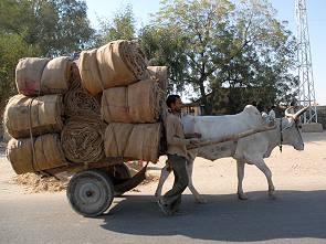 Wir kamen am späten Nachmittag nach langer und recht eintöniger Fahrt von Jaisalmer in unserem Hotel Lallgarh Palace an. Dieses ist an sich schon sehenswert, ganz im Gegensatz zu einigen anderen Plätzen von Bikaner. Man sieht vielö Militär und Kasernen, es liegt oft Smog in der Luft und alles macht einen weltfernen Eindruck. Die Menschen in Bikaner leben hauptsächlich vom Export von Wolle, vornehmlich nach Jaipur. Rund um den Ort wird auch Quarz abgebaut und zur Glasgewinnung bis nach Belgien exportiert. Touristen kommen eher selten für längere Zeit hierher, was natürlich auch seinen Reiz hat. Nach der Unabhängigkeit im Jahr 1947 geriet Bikaner durch die Trennung Pakistans von Indien in eine Randlage und verlor seine Funktion als Handelsmittelpunkt, erhielt sich bis heute den Eindruck einer eher mittelalterlichen Wüstenmetropole. Lastkamele sind nach wie vor im Straßenbild nicht wegzudenken. In Bikaner besucht man die wenigen Sehenswürdigkeiten der Stadt, ansonsten hat man hier nicht viel zu tun, außer einem Bummel durch die Basare am Kote-Tor oder einem Ausflug in die Wüste. Es gibt auch mehrere prächtige Havelis in Altstadt, zwei bekannte Jain Tempel und diverse Palasthotels für eine stilvolle Unterkunft. Sie haben alle ein gutes Preis-Leistungsverhältnis und auch die Menschen in den Wüstendörfern der umgebung sind noch nicht so auf Kommerz aus wie rund um Jaisalmer.