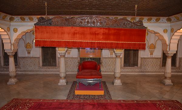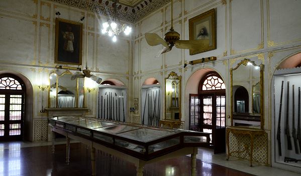 Heute ist hier das Museum untergebracht, das nach alter rajputischer Tradition die übliche Waffensammlung präsentiert. Es gibt unzählige alte Schilde, Schwerter, Kurzdolche, Gewehre und Speere. Einige der Waffen sehen richtig gemein aus. Sogar eine Kanone, die auf ein Kamel montiert werden konnte, ist hier zu sehen. Man hat bald das Gefühl, die Aneinanderreihung von Gewehren, Speeren, Dolchen und Schwertern würde kein Ende nehmen.