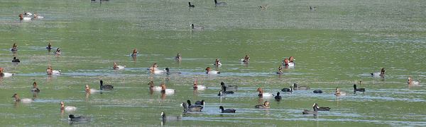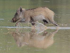 Der Blick auf den See und das Ufer lohnen sich, denn es gibt viele Vögel und auch ein paar Säugetiere zu sehen. Löffler, Reiher, diverse Entenarten, Stilte und Kiebitze. Wilde Schweine schienen über das Wasser zu laufen, es handelte sich wohl um eine Sandbank mitten im See. Am Ufer grasten friedlich ein paar Hirschziegen-Antilopen, leider nur Weibchen.