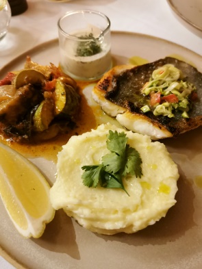 Als Vospeise wählte ich ein Oktopus Carpaccio und Michael hatte sich für das Ceviche entschieden. Hauptspeise war eine Hummer-Pastilla mit gegrilltem Gemüse als Beilage für mich und ein St.Pierre Fisch mit Ratatouille, Kartoffelpürree und Limonensauce für Michael.