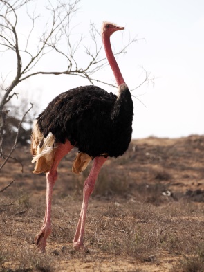 Unsere Safari begann direkt am Straßenrand mit der ersten Attraktion: einem Rothalsstrauß, einem prächtigen Männchen. Diese Unterart, auch als Nordafrikanischer Strauß oder "Struthio camelus camelus" bekannt, war einst in ganz Nordafrika weit verbreitet, wurde jedoch in Marokko in den 1940er Jahren durch Jagd und Lebensraumverlust ausgerottet. Heute spielt der Strauß eine zentrale Rolle in den Wiederansiedlungsbemühungen des Souss-Massa-Nationalparks.