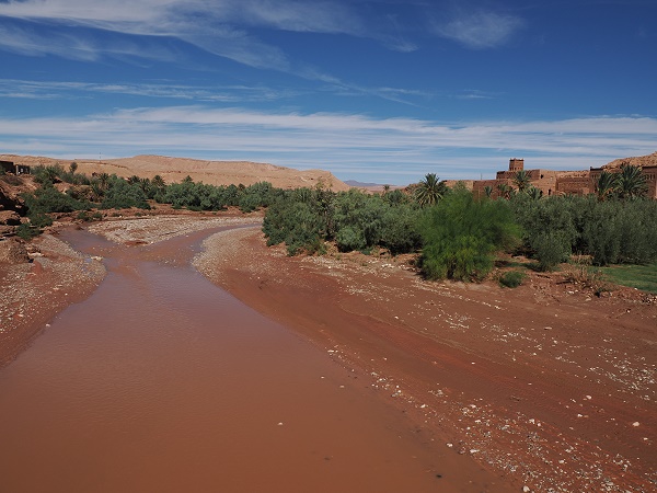Der Ort Aït-Ben-Haddou ist zweigeteilt, er besteht aus einem alten Teil und dem modernen, touristischen Teil, getrennt durch das Flussbett und mit einer Fußgängerbrücke aus Beton verbunden.