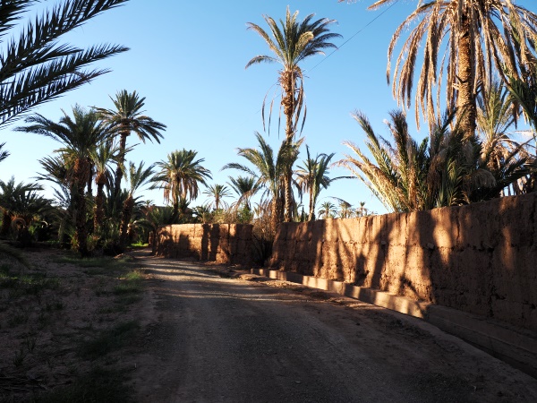 Die Palmeraie von Agdz umfasst Tausende von Dattelpalmen und ist Teil des größten zusammenhängenden Palmenhains in Marokko, der sich entlang des Draa-Flusses erstreckt. Hier werden Datteln produziert, die bei unserem Besuch reif waren - eines der wichtigsten landwirtschaftlichen Erzeugnisse in der Region.