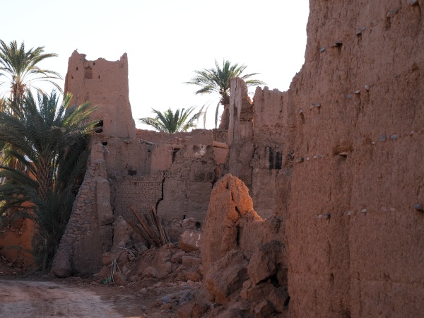 Eine der bekanntesten und ältesten Kasbahs in der Region, etwa 5 km von Agdz entfernt ist die Kasbah Tamnougalt. Sie wurde im 16. Jahrhundert erbaut und diente als Verwaltungssitz und Wohnort eines Gouverneurs. Besucher können durch die engen Gassen und die gut erhaltenen Räume gehen, das hatten wir eigentlich auch vor. Aber der Regen machte uns da leider einen Strich durch die Planung.