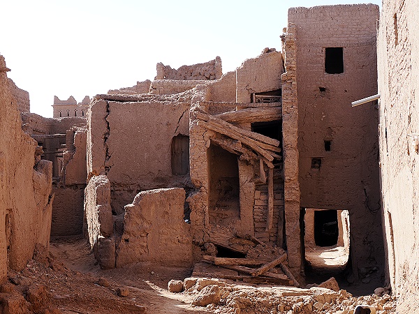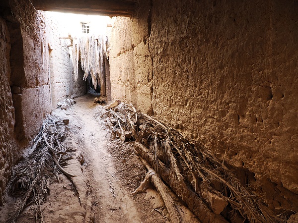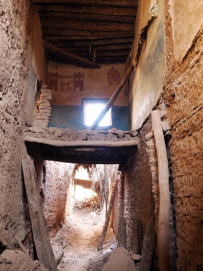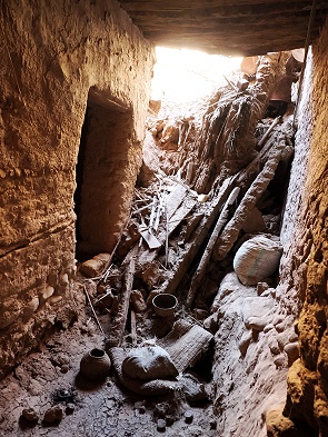 Hier roch es nach Lehm, es war kühl und an einigen Stellen gab es eingestürzte Wände und bröckelnde Mauern. Ab und zu war eine Holztüre mit einem modernen Schloss versperrt, hier wurde das Haus noch als Lagerraum genutzt. Bei den letzten schweren Regenfällen am 10. September 2024 haben über 10 Familien in diesem Ort ihre Lehmhäuser am Rand der Altstadt verloren, als das Wasser von den Hügeln in Richtung Fluss strömte und die Altstadt im Weg war.