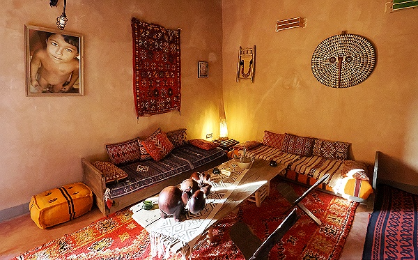 Zufällig hatten wir danach noch ein weiteres Hotel gebucht, das ebenfalls Juan gehört: die Lodge Hara Oasis in Agdz. Ein drittes befindet sich in Ouarzazate, das Dar Kamar, mitten in der Taourirt-Kasbah. Alle sind in einem ähnlichen Stil eingerichtet.