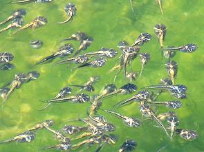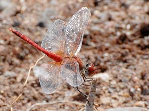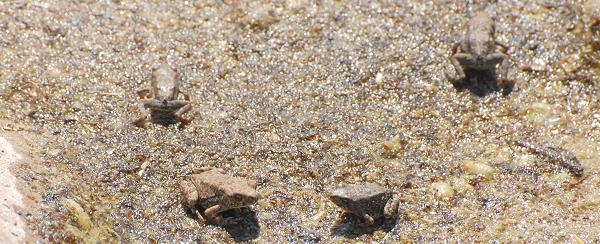 Überall standen Tümpel und Pfützen in den Wassserläufen und da konnte man sich gar nicht satt sehen an den Insekten und Amphibien, die sich darin und darum tummelten. An einem Fluss stiegen wir mal aus und liefen ein Stück am Wasser entlang: Wasserläufer, tausende von Kaulquappen in jedem Tümpel und ebenso viele fertige, kleine Fröschlein zwischen den Steinen am Ufer. Wo man auch hintrat, etwas hüpfte weg. Dazu kamen zahlreiche Libellenarten: Rote, Blaue, Gelbe. Erstaunlich für ein trockenes Wüstenland: Von den insgesamt 5.600 verschiedenen Libellen auf der ganzen Welt leben 140 Arten allein in Namibia.