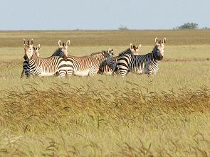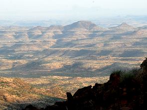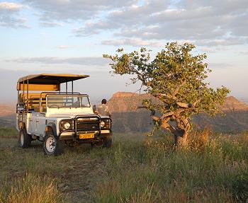 Die Lodge bietet auch Pirschfahrten auf dem hufeisenförmigen Etendeka Plateau an, auf dessen Abbruchkante die Lodge thront. Unten auf dem Satellitenbild kann man die Lage gut erkennen. Direkt neben der Grootberg Lodge beginnt ein Rundweg, der durch das ebene Grasland auf dem Plateau führt, von der gegenüber liegenden Abbruchkante hat man einen netten Ausblick ins Nachbartal.