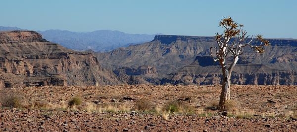 Der Fish River, auf Deutsch auch Fischfluss, hat hier im südlichen Namibia ein Meisterwerk der Natur vollbracht. Auf einer Länge von 160 Kilometern, bis zu 27 Kilometer breit und bis zu 550 Meter Tiefe haben seine Wasser sich in die Felsen gegraben und so den größten Canyon Afrikas geschaffen. Er gilt nach dem Grand Canyon sogar als zweitgrößter Canyon der Erde. Geschützt ist die einmalige Natur durch einen Nationalpark, den 6.000 km² großen |Ai-|Ais/Richtersveld Transfrontier National Park. Er wurde im Jahr 2003 als so genannter Peace Park gegründet Auf der südafrikanischen Seite liegt der ehemalige Richtersveld National Park und auf der namibischen Seite wurden der |Ai-|Ais Hot Springs Game Park und der Fish River Canyon National Park in einer gemeinsamen Verwaltung unter neuem Namen organisiert.
