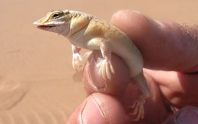 Diese Echsen laufen schnell über den Sand und halten hohe Körpertemperaturen, bis zu 44°C aus. Um nicht zu überhitzen zeigen sie einen Hitzetanz, in dem sie den Schwanz und abwechselnd jeweils zwei Füße in die Luft hebt. Bei Gefahr können sich die Echsen blitzschnell tief im Sand eingraben, wo sie auch die Nacht verbringen. Wie schnell? Wie haben es beobachtet: zwei bis drei Schläge mit dem Schwanz und dazu gehörig das Hin- und Herwerfen des Körpers in der richtigen Frequenz machen aus der Düne Treibsand und die Echse ist in ein bis zwei Sekunden verschwunden.