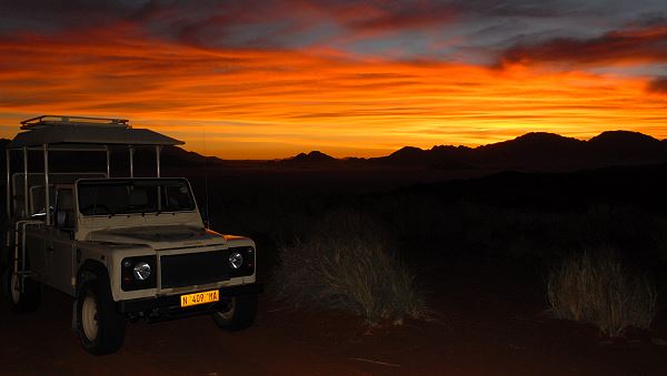Irgendwo auf den über 180.000 Hektar Fläche des NamibRand Nature Reserve findet am Abend jede Jeep-Gruppe ihre eigene Düne, von wo aus man zum Sonnenuntergang eine tolle Aussicht auf eine der abwechslungsreichsten Landschaften in der Region hat.