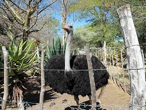 Nachdem wir unser Auto auf dem kleinen Parkplatz abgestellt hatten, gingen wir zuerst zur Kasse. Gegen einen geringen Eintritt kann man das Gelände betreten. Schon beim Bezahlen hörten wir vertraute Geräsche: das Tschilpen vieler Wellensittiche. Es gibt hier nämlich nicht nur den See zu besichtigen, sondern auch einen kleinen Privatzoo mit vielen Vögeln, Stauße und Kudus. Dazwischen saftig-grüne Rasenflächen und zahlreiche Pflanzen. Interessant ist auch der vollkommen mit allerhand Kleinkram zugestellte Souvenirshop, in dem man ein interessantes Heft "Der Otjikotosee - Geschichte und Geheimnis" kaufen kann. Es wurde von Siegfried Agenbag verfasst und enthält viele Infos in Deutsch und Englisch. In den Gebäuden am Eingang gibt es auch ein Café, ein Aquarium mit Fischen aus dem See und zahlreiche Infotafeln mit Daten und Fakten.