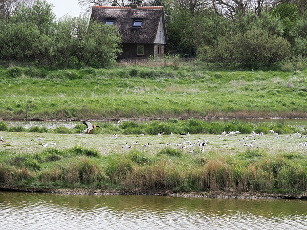Der Ton wurde damals zum Bau des Damms entnommen und so entstand dahinter ein Gewässer. Dieser Ort ist bei Vogelbeobachtern sehr beliebt, denn auf den Inseln im See hinter dem Deich leben je nach Jahreszeit Flußseeschwalben, Säbelschnäbler, Pfuhlschnepfe und Alpenstrandläufer. Auch Austernfischer, Großer Brachvogel, Kiebitzregenpfeifer, Rotschenkel, Brandgans and Ringelgans kann man hier mit Glück beobachten.