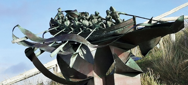Passend zur Bedeutung des Ortes für die Seefahrt gibt es an der Düne auch noch zwei Denkmäler für die Seerettung: Einmal der langjährige Seeretter Jacob Glas, der im Lauf von 44 Jahren 170 Menschen aus Seenot gerettet haben soll. Auf der Seeseite ist eins der viele Jahre eingesetzten Ruderboote dargestellt, mit denen Schiffbrüchige aus den Wellen geborgen wurden.