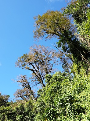 Mehrere andere Autos mussten auch wieder umdrehen. Wieder unten an der erwähnten Bushaltestelle angekommen, kamen gerade mehrere Taxen an und ein halbes Dutzend Wanderer machten sich auf den Weg um, den dort startenden privaten Pipeline-Trail zu laufen. Am Ende gibt es einen Wasserfall und zwischendrin einen sogenannten tausendjährigen Baum zu bestaunen. Auch hier ist der Tarif 5 Dollar pro Person, auf einigen Berichten hatten wir jedoch an den Bildern gesehen, dass wir für die abenteurlichen Bachüberquerungen und steilen Wegstücke nicht geeignet waren.