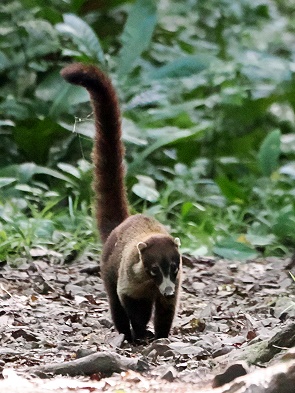 Gleich am frühen Morgen nach wenigen Kilometern hatten wir großes Glück: Eine Gruppe Nasenbären (Nasua narica) oder auch Coatis genannt kreuzte unseren Weg. Die sind sehr sehr soziale Tiere – und besonders am frühen Morgen, wenn sie sich Treffen, ein tolles Naturschauspiel.