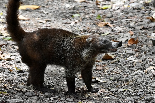 Meist begegnete sie uns in gefiederter Form oder als Echse oder Frosch. Ein ziemlich alter Nasenbär mit hellen Haaren an der Schnauze kam ein Stück hinter uns her, wahrscheinlich war er von anderen Wanderern schon mal gefüttert worden. Als er merkte, dass es bei uns nichts zu holen gab verschwand es wieder im Wald. Auch Hörnchen konnten wir hier in den Bäumen beobachten.