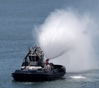 Einige haben sich selbst bespritzt, das ist gezielter Wassersprühmechanismus, denn die Motoren und Antriebe der Schlepper arbeiten unter hoher Belastung, besonders in den tropischen Temperaturen Panamas. Durch das Aufsprühen von Wasser auf den Rumpf und das Deck kann die Oberfläche gekühlt werden – besonders bei langsamem Manövrieren in engen Kammern. Das Sprühsystem ist natürlich nur eine zusätzliche Art der Nutzung für die aus Gründen der Brandbekämpfung installierten leistungsfähigen Wasserkanonen.