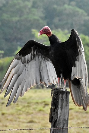Einige 100 Meter landeinwärts führt die Straße an einer Lagune mit vielen Vögeln entlang. Weit sind wir mit dem Auto aber nicht gekommen, da an der Straße eine Zufahrt mit Privat beschildert und gesperrt war. Aber es war sehr heiß und wir haben uns schon gefreut, am Rand der Wiesen mit Kühen am frühen Morgen auf ein reichhaltiges Vogelleben zu treffen. Hier sahen wir zahlreiche kleinere Vögel auf dem Zaun. Auch Rabengeier und die hübschen Gabelschwanz-Fliegenfänger mit ihren langen Schwänzen konnten wir schön fotografieren.