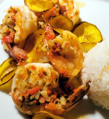 Am ersten Abend bekamen wir eine leckere Kürbissuppe, dann Reis mit 6 großen Shrimps und Bananachips und Zimtkuchen zum Nachtisch.