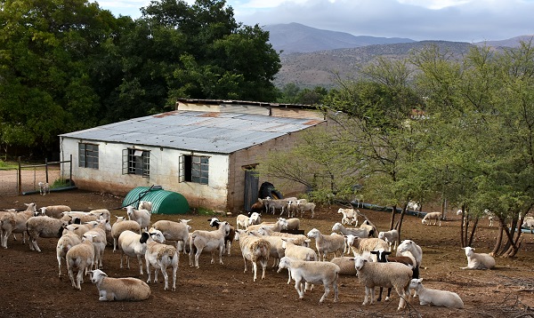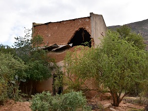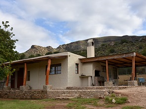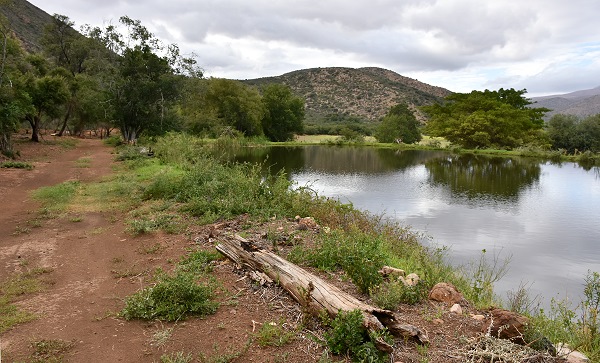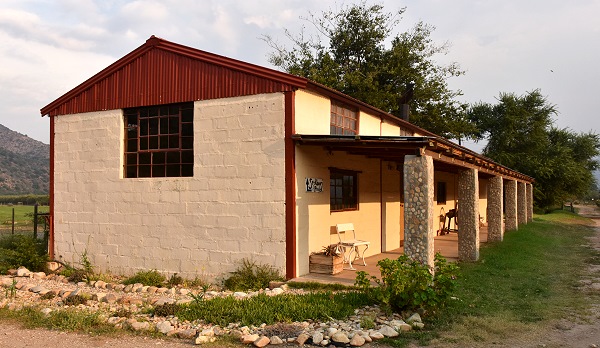 Das Wildedruifhuisie bietet Platz für 4 Personen und liegt malerisch etwas oberhalb von einem Damm. Es hat ebenfalls keinen Pool, nur ein kleines Wasserbecken zum Erfrischen. Eine überdachte, schattige Veranda lädt zu chillen und grillen ein. Nebenan liegt der Kraal, in dem die Schafe die Nacht verbringen. Wir haben es nur von außen gesehen.