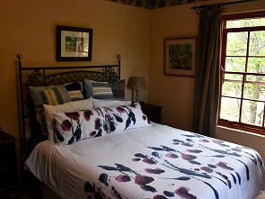 Am günstigsten ist das Olive Tree Cottage für 2 Personen. Die Einrichtung ist gemütlich, unten ist eine Innenaufnahme vom Schlafzimmer zu sehen. Es liegt direkt als flacher Anbau neben dem Farmhaus, man hat aber genug Ruhe und einen wunderschönen Garten mit zahlreichen Vögeln direkt vor der Tür, siehe weiter unten. Einen Pool gibt es hier nicht, dafür liegt in der Nähe ein Tennisplatz.