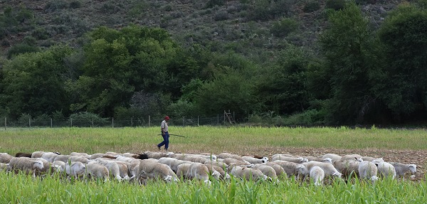 Die Schafe weiden auch oft zwischen den Olivenbäumen und fressen die unteren Zweige ab. Paviane, die sonst hier alles räubern was ihnen in die Finger kommt, lassen diese Bäume in Ruhe. Die Oliven im Naturzustand sind ihnen zu bitter. Früchte im Garten sind ständig gefährdet, die Affen wissen auch was gut schmeckt und wo es zu holen ist. Eine kleine Gruppe grüne Meerkatzen konnten wir ebenfalls auf dem Gelände beobachten, sie waren allerdings ziemlich scheu und beobachteten uns aus der Ferne.