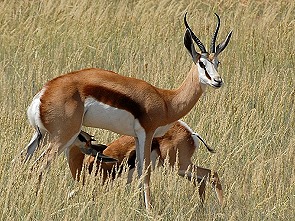 Wer in Südafrika "Keinen Bock" gehabt hat, der hat etwas falsch gemacht. Denn Böckchen jeder Art trifft man in den meisten Nationalparks und in den Reservaten zur Wildbeobachtung ganz bestimmt an. Dabei sind einige größere Arten gar nicht scheu und trauen sich auch tagsüber zum Trinken oder Grasen aus dem Gebüsch, zum Beispiel der Buntbock oder die Kuhantilope.