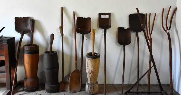 Wer sich im unteren Teil des Museums im Keller befindet, den trennen nur ständig knarzende Holzdielen mit Spalten von den oben liegenden Wohnräumen. Es hört sich unheimlich an, wenn die Besucher oben herumlaufen.Hier unten kann man Handarbeiten bewundern, Puppen und Spielsachen und ein Puppenhaus aus Stachelschweinborsten. Auch die Einrichtung einer Zahnarztpraxis und zahlreiche Gewänder aus der alten Zeit sind hier ausgestellt. Sehr spannend auch die Lebensgeschichten einiger Ortsberühmtheiten, die neben den Ausstellungsstücken an den Wänden hängen.