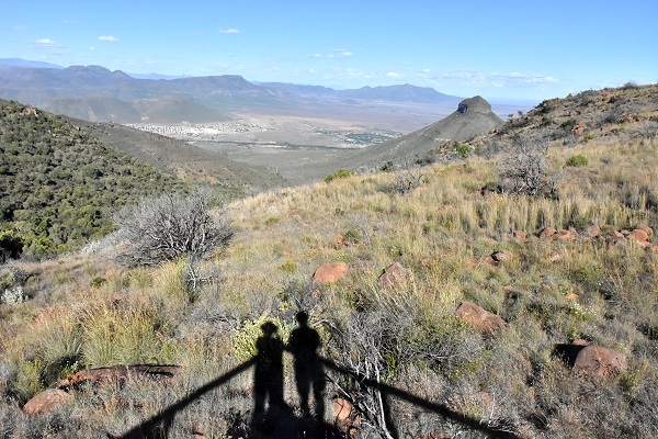 Unser Bild vom Sonnenuntergang stammt vom untern Ausichtspunkt an der Spitzkehre, wo um diese Zeit nichts mehr los ist, da die Stadt dann bereits im Schatten des Berges liegt. Aber in der anderen Richtung versinkt die Sonne irgendwo hinter den schroffen Felsen des Valley of Desolation. Das gefiel uns besser, als von ganz oben zu sehen, wie der Sonnenball am fernen Horizont der Karoo verschwindet. Aber dies ist natürlich immer eine Frage der Sicht und der Wolkenbildung.