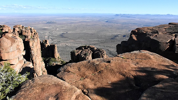 Vom Rundweg, den man in einer guten halben Stunde bewältigen kann, hat man so viele schöne Aussichten, dass man dafür bestimmt länger braucht und oft den Ausblick in die flache Karoo und auf die Felsen geniesst. Hier ist man hautnah am "Tal der Verlassenheit".