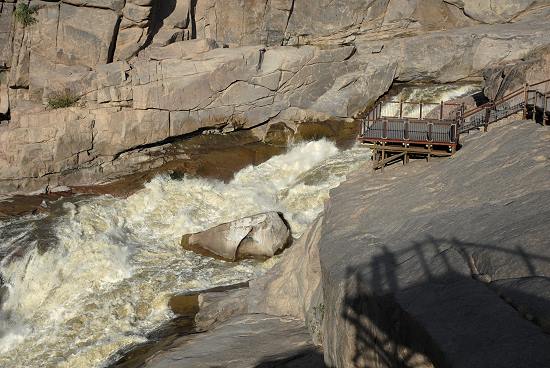 Aber auch mit fallendem Wasserstand waren die Augrabies Falls immer noch sehr beeindruckend, am schönsten sind sie in der Zeit von März bis Mai. Bilder aus dem Oktober zeigen eher ein schmales Rinnsal, die Landschaft um den Fluss ist aber ebenso einen Besuch wert.